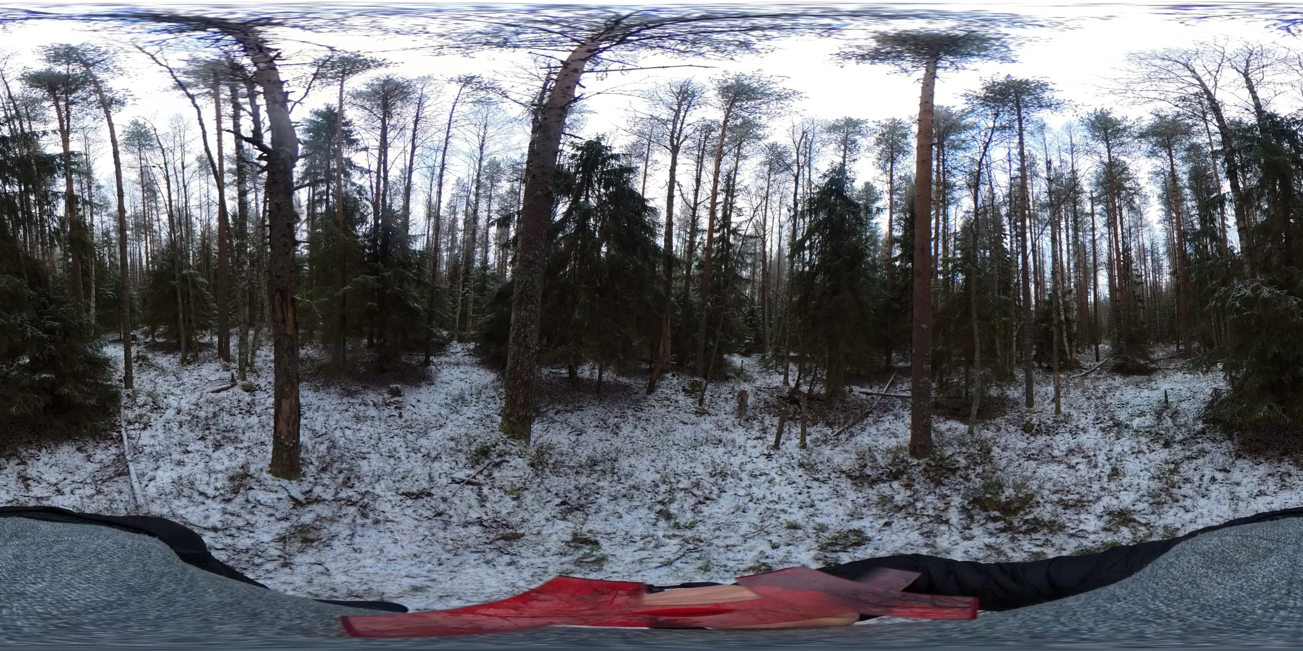 Metsäpalstalla on vielä puretun tulipaikan jäännökset, myyjät purkavat rakennelmat loppuun.