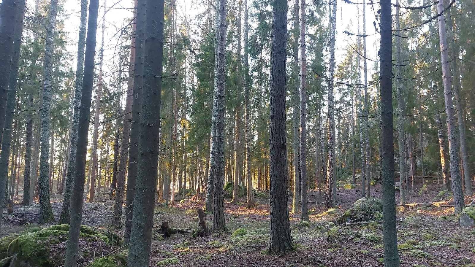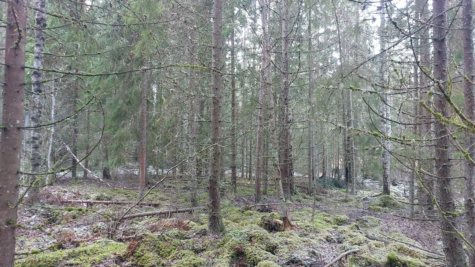 Osalla metsikkökuvioista on hieman vanhempaa, tuulen ja lumen katomaa puuta seassa.